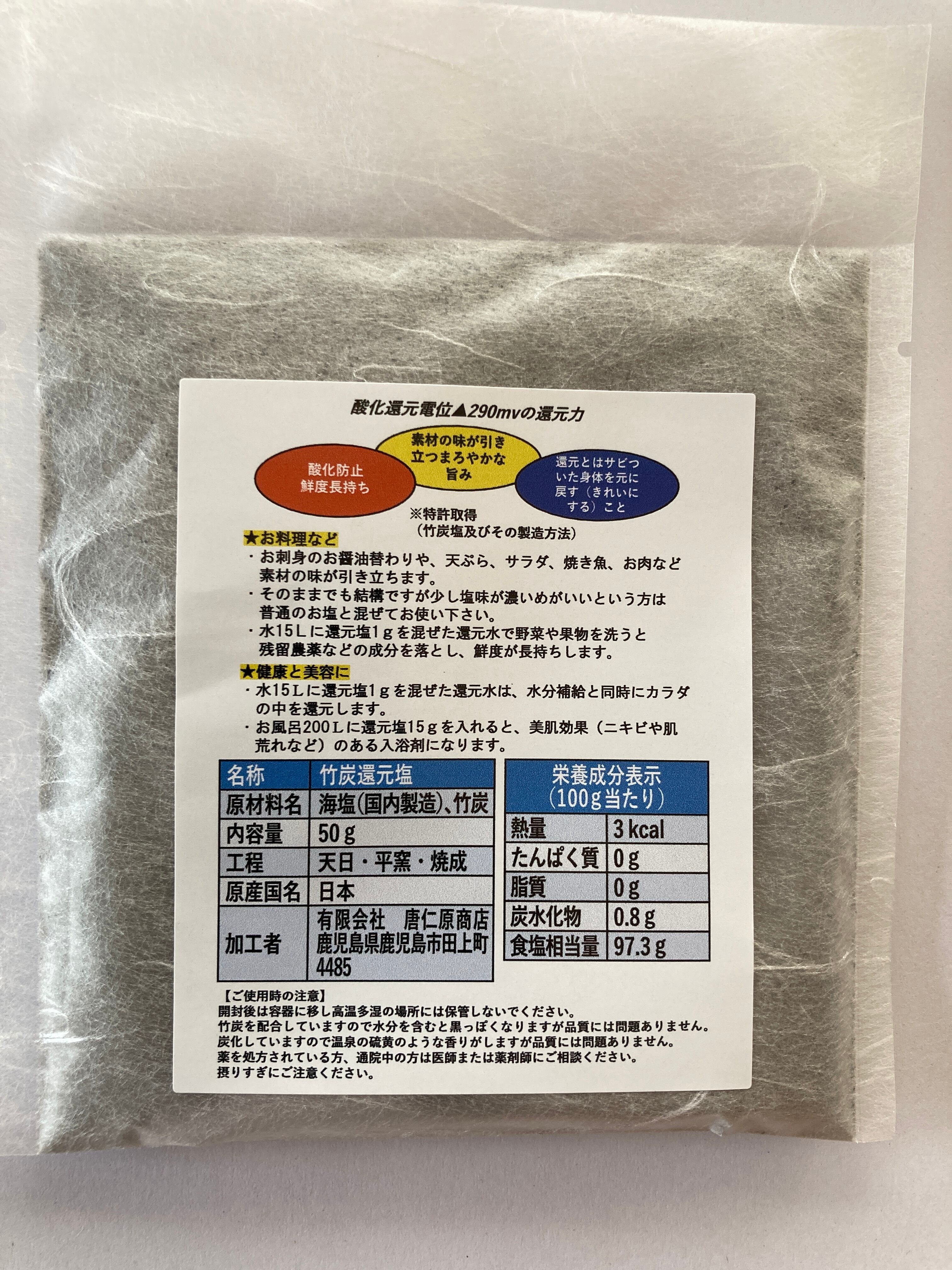 国産の生竹に海塩を詰めて炭化した天然の還元塩